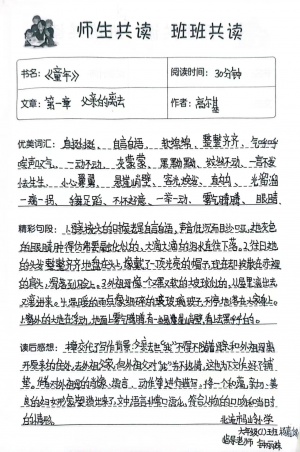 玉林北流市马岭小学六(1)班同学阅读笔记