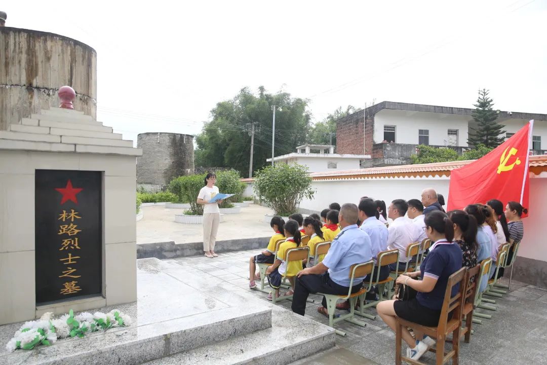 “1945年春夏之交,时任冀鲁豫军区第一军分区第三基干团副团长的林路,在山东省茌平县广平乡以东阻击从聊城前来进犯的日本侵略军战斗中不幸中弹牺牲,年仅29岁……”在林路烈士墓碑前,新村小学古婳老师生动地将烈士林路的爱国事迹娓娓道来,带领学生们追寻革命先辈的红色印记,从红色故事中感悟红色精神、汲取奋进力量,引导他们成为有理想、有道德、有文化、有纪律的共产主义事业接班人。