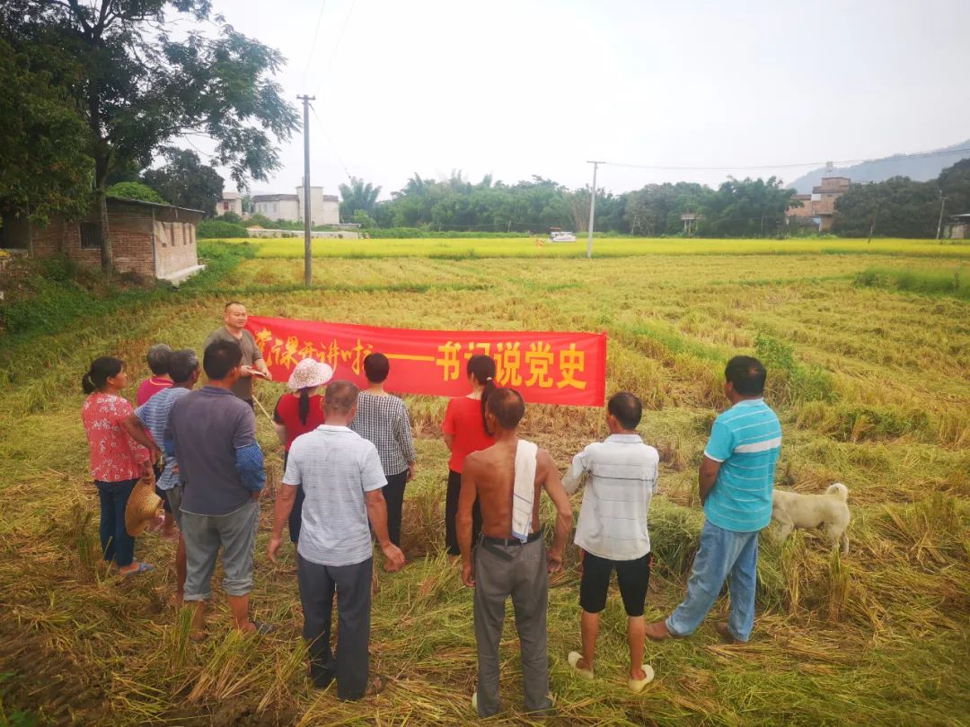 稔坡村党委组织党员打卡桂东南陆川抗日武装起义龙河支队集合遗址党史教育馆 “参观了党史教育馆,看了那么多图片、资料,我才知道家乡也有这么多英雄,我要向更多的党员讲述革命先辈的故事,让革命英雄的精神永远传承。”参加完打卡桂东南陆川抗日武装起义龙河支队集合遗址党史教育馆活动后,横山镇稔坡村党委党员李航感慨地说。 党课、粮食送到手 精神、物质双丰收 “今年水稻收成很好,同心村农机服务队还主动帮我把水稻收割分装好运送到目的地,最重要的是,收工后大家还就地在稻田边上一起聆听村支书讲党课,真是太有收获了。”同心村的青年党员王安英高兴地说道。