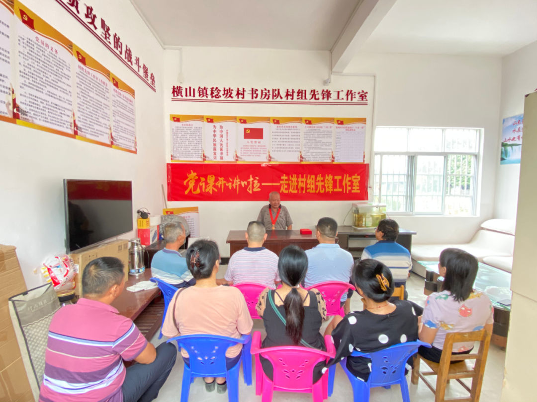 同心村党委书记何志伟在田间地头上党课 6月,迎来早稻的收获时节,横山镇党委抓住农村党员、入党积极分子收割、晾晒稻谷的好时机,组织“党课”宣讲小分队利用周末休息时间,走进乡村田间地头,在水稻收割劳作休息之余,把党课送到党员和入党积极分子身边,用稻田作课堂,用田坎渠边充当党课“黑板”,用鸟语虫鸣配乐,用质朴的“乡音”传递党音。 老党员忆初心 “微党课”上守初心
