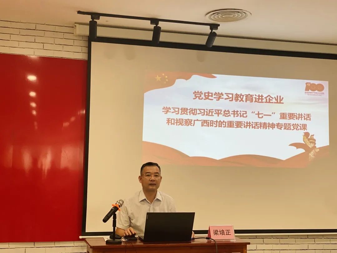 党组书记、局长梁培正在梦之岛党委上党课 他指出,梦之岛作为本土培育起来的大型商贸企业,要坚持党的领导,勇于承担社会责任,将深入学习贯彻习近平总书记在建党100周年庆祝大会上的重要讲话精神和视察广西时的重要讲话、重要指示精神与企业发展紧密结合,用讲话和指示精神指导企业发展实践,在经济社会发展中发挥积极作用,为建设新时代中国特色社会主义壮美广西贡献力量。