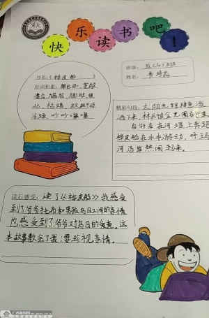 河池市东院小学五(10)班韦禹泽同学阅读《桦皮船》的读后感。指导老师:黄彩云