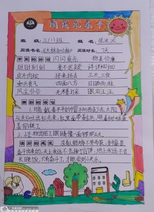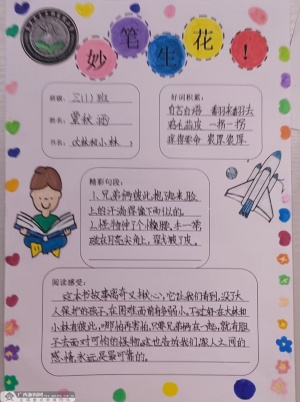 河池市东院小学三(1)班张冰冰同学完成《大林和小林》阅读记录卡。指导老师:冉艳春